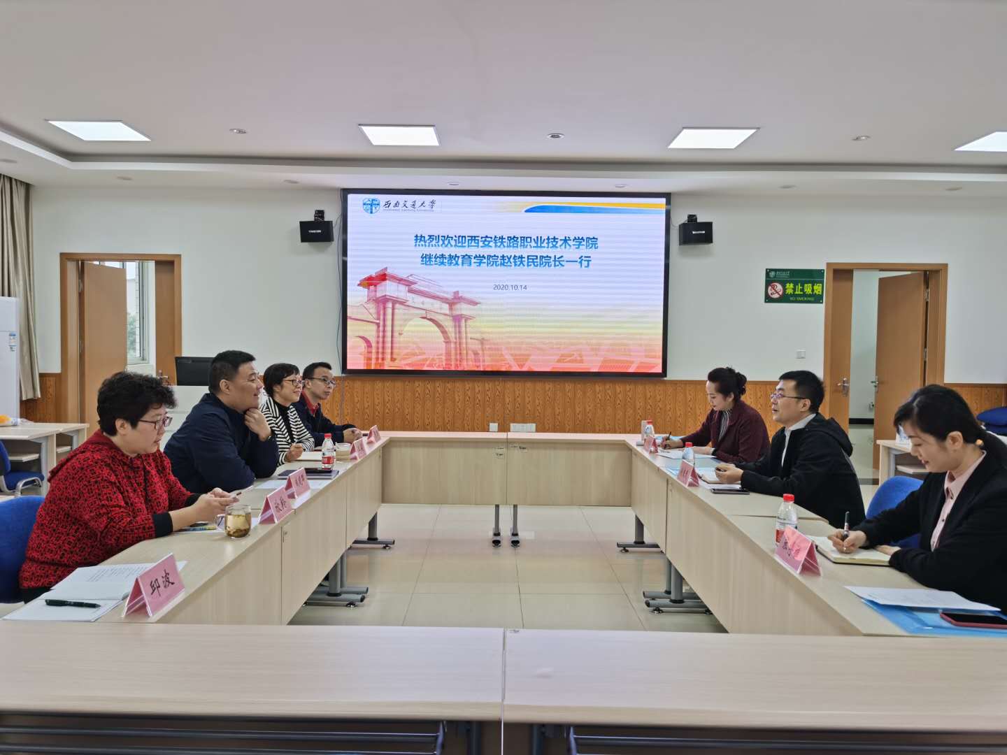 10月14日,继续教育学院院长赵铁民、副院长许晓华、教务科科长张博雅赴西南交大远程与继续教育学院进行工作交流,西南交大远程与继续教育学院院长钱晓群,副院长王莉、欣羚、贺强及项目规划管理部主任邱波参加了交流会。