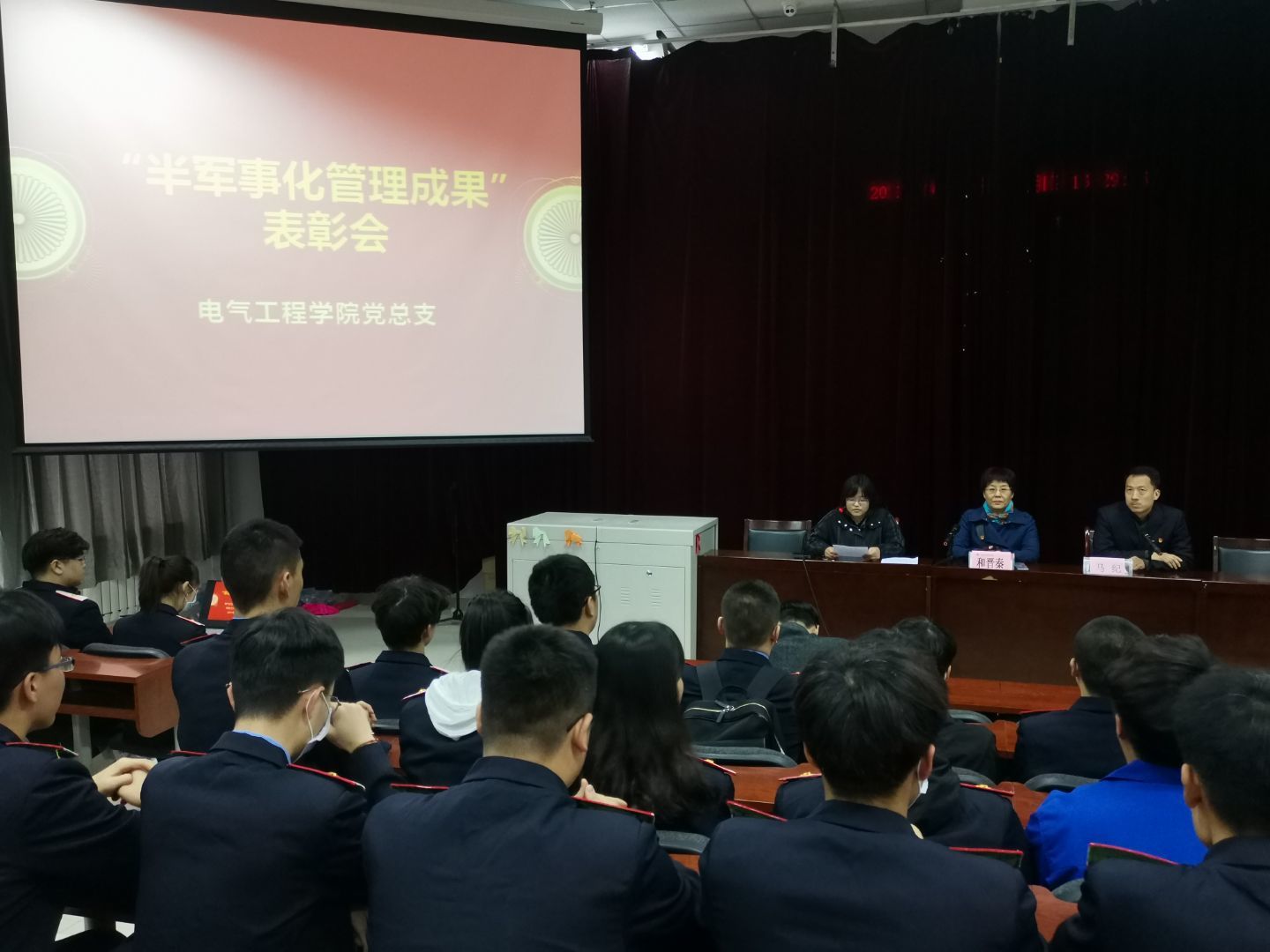 为强化学生良好的生活习惯和作风纪律,建设优美校园环境,及巩固“半军事化管理”成果,电气工程学院党总支于4月1日下午召开“半军事化管理”成果表彰大会,会议由党总支组织委员侯嵘主持。