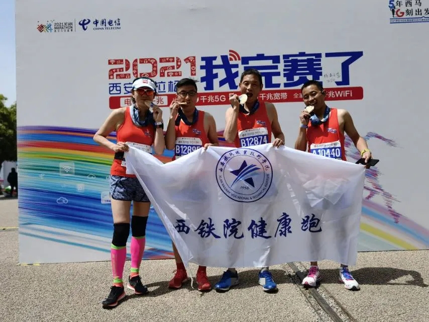 为强健体魄、快乐运动,学院工会秉着以“运动 健康 快乐”的核心理念,成立了“西铁院健康跑”跑团,目前共吸引了20余名教师跑步爱好者积极加入。成立之初,跑团部分成员参加了4月11日举办的杨凌马拉松和4月17日举办的西安马拉松,以独特的跑步方式为十四届全运会加油助威!