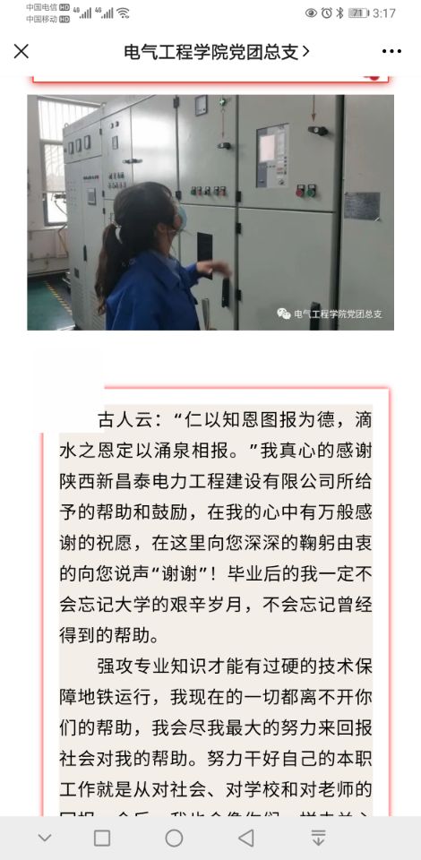 陕西昌泰电气科技发展有限公司是一家专业从事输变电工程、电力设备安装、照明通风自动化设备工程设计和施工的专业公司。公司在自身发展的同时,积极参与公益活动,履行社会责任,2017年开始,在纽约国际官网设立了首个企业冠名的奖学金——“陕西新昌泰电力奖学金”,每年为电气工程学院品学兼优的贫困生提供5万元奖(助)学金,支持电气工程学院职业教育事业发展。三年来,已先后有81名电气学子获得了该项奖(助)学金,受到奖助学金的学生常怀感激之心,在感谢信中表示:一定不辜负贵公司的浓浓真情和爱心,将更加努力地学习和工作,以优异的成绩回报社会。