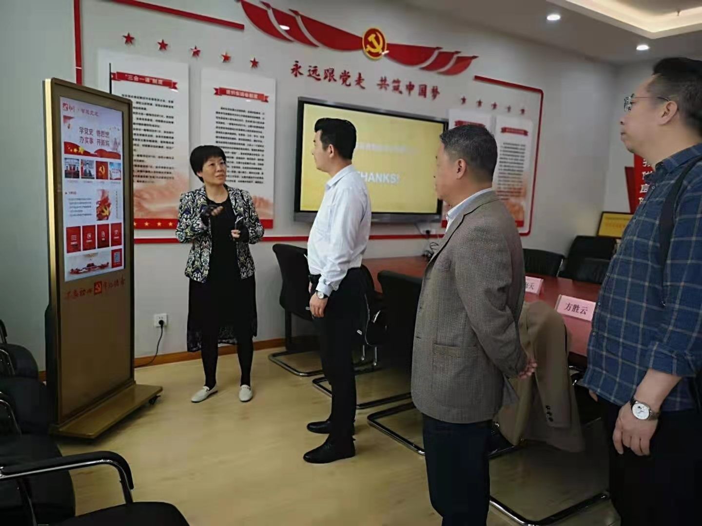 景延鹏对马院承担的双高建设和提质培优两大重点项目建设情况进行了全面介绍,双方就思政课改革和课堂革命进行了深入的交流和探讨。随后与张伟等来到电气工程学院8楼,在党总支书记和晋秦和院长李栋陪同下参观了学校思政文化长廊。在电气工程学院师生政治生活馆,和晋秦对建设师生政治生活馆的初衷、功能、作用和运行机制,特别是对“五联五制五提升”和“三说促四心”党建品牌创建的过程、建设情况,以及党员积分制的具体做法和取得的成效进行了详细介绍。张伟,叶琛对纽约国际官网党建创新工作和党建品牌给予高度评价。
