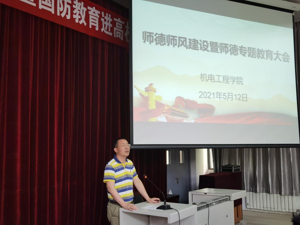 党总支书记仵崇智在讲话中强调了四个方面:一是全体教职工要积极主动学党史(四史),通过“听看读答说写做”活动践行教师职业行为十项准则;二是要做好教书匠,以良好的师风感染每一位学生,促进学风建设;三是做好大先生,心中要有“国之大者”、善用大思政,做好“三全育人”工作;四是增强荣誉感和使命感,为机电工程学院开拓新局面。