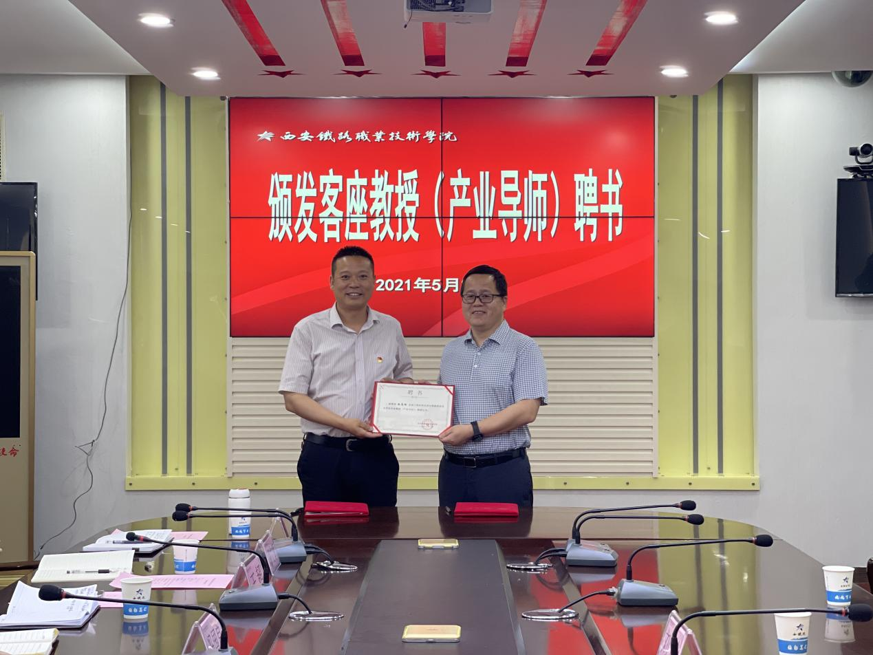 会上,由董奇代表学校为耿高鹏颁发了客座教授、产业导师聘书;耿高鹏作为产业导师与电子信息学院铁道通信专业青年才俊、骨干教师签订师徒协议;双方就2021年铁道通信与信息技术专业人才培养方案修订进行了深入的研讨。