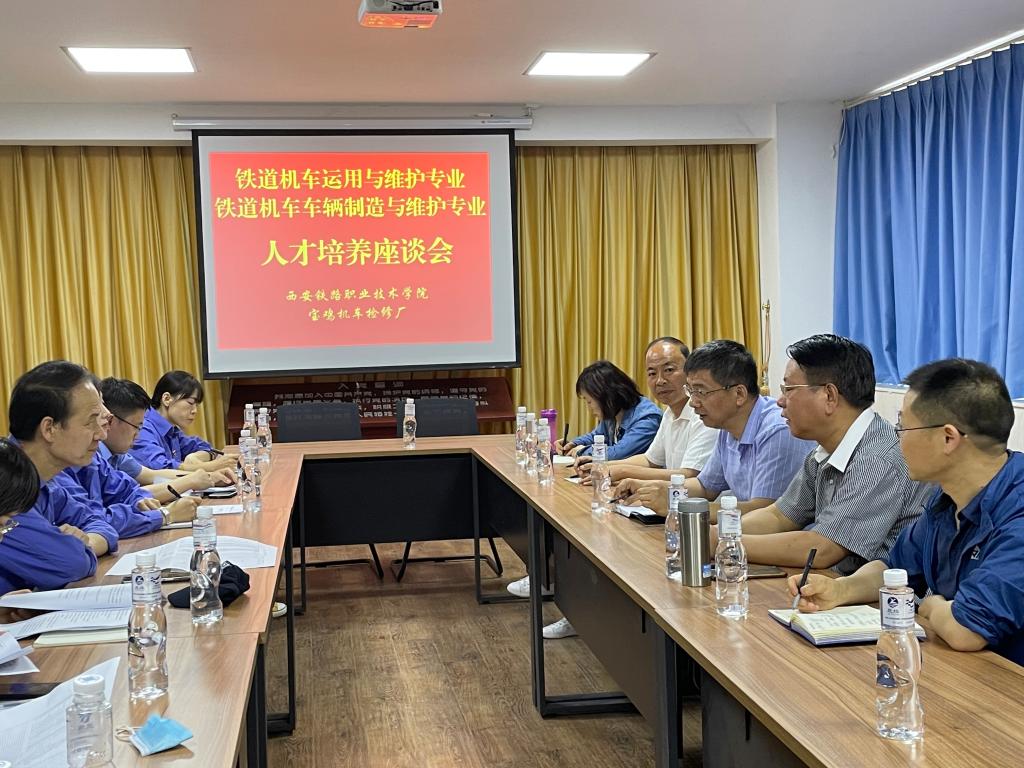 随后,李益民一行6人前往宝鸡机车检修厂召开了铁道机车运用与维护专业和铁道机车车辆制造与维护专业人才培养方案座谈会,听取企业专家修改和完善意见,共商“2+1”校企联合培养事宜。西安局集团有限公司职培部科长侯红军、宝鸡机车检修厂职教科科长雷鑫、技术科、材料科、检修车间等部门负责人、技术骨干以及大国工匠、火车头奖章获得者、纽约国际官网往届优秀毕业生马会军、陈梁一同参加座谈、讨论。侯红军通报了全局各工种技能鉴定情况,既肯定了高职生基础较好,西铁院理论培训认真,效果好,强调要分析未通过职业技能鉴定理论考试跟岗实习学生原因,查缺补漏,注重现场实作和理论双提升。接着大家针对机车钳工、机车电工技能鉴定和学生动手能力、自主学习能力的培养,以及电力电子技术、PLC、钳工基础、应用文写作、机械制图、智慧驾驶、班组管理、新媒体运用等课程的建设,理实一体化教学,在线课的建设推广使用以及安全意识、人身安全、设备安全、职业安全等方面提出了大量实质性的意见和建议。