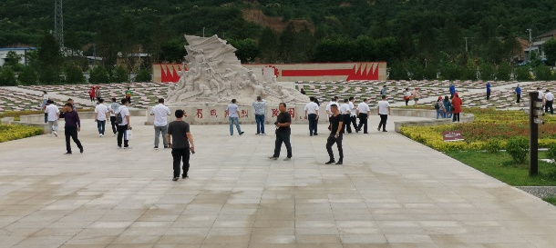 全体盟员参观完纪念馆后,移步到烈士陵园,该烈士陵园安息了3000多名壮烈牺牲的解放军战士和1600余名无名烈士,我们缅怀革命先烈,向牺牲的烈士默哀致敬。