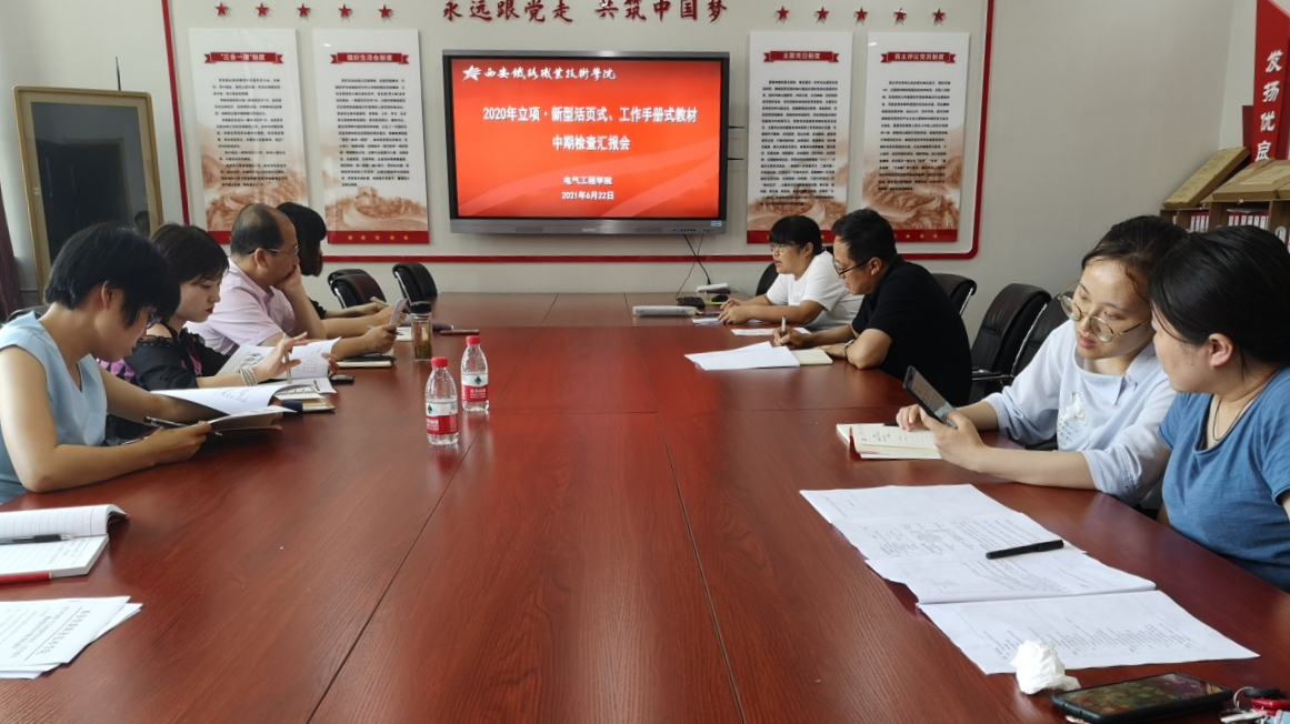 为进一步加强新型活页式、工作手册式教材建设项目管理,确保教材立项建设项目按期完成目标,6月22日下午,电气工程学院在813会议室召开2020年立项教材建设项目中期检查汇报会。会议邀请北京理工大学出版社陕西分社社长高锦、编辑李倩楠,院长李栋、副院长张秀红及6位项目负责人参加本次会议。