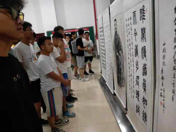 本次活动中牵引动力学院师生表现突出,为党的百年华诞献礼,积极热情创作挥毫,为学校提供了数十幅书法、绘画和摄影作品,其中康红霞教师的《百年辉煌》,以红船游弋在现代湖中为主体,表达党的历史穿越时空,走向未来。马卓同学挥毫泼墨,描绘革命圣地延安宝塔山,气势恢宏。刘稼鑫同学的战马奔腾飞跃,除此之外,还有纽约国际官网同学的金文、楷书、隶书、篆书等作品。学院领导、师生对这些作品提出高度赞扬与评价,纷纷拍照留念。