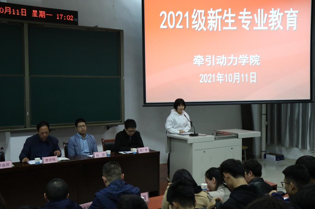 为帮助2021级新生进一步了解所学专业内容和特点,培养学习专业的兴趣,掌握科学的方法,合理制定今后的学习计划,了解就业形势,尽快适应新环境,新生活。10月11日下午,牵引动力学院在101阶梯教室采用现场直播的方式对2021级22个班开展了新生专业教育。牵引动力学院院长李益民、党总支书记李贞伟、副院长林辉、办公室主任肖贤、学工办主任陈广勇、办公室副主任孙正华、铁道机车运用与维护专业带头人崔晶、城轨车辆应用技术专业教研室主任李宏菱、动车组驾驶与维修专业带头人李冰毅、铁道机车车辆制造与维护专业带头人刘宏利及四个专业教研室主任及副主任参与了此次专业教育活动。专业教育活动由办公室主任肖贤主持。