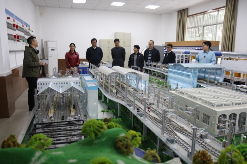 温克军一行首先参观了校区钢轨探伤演练场、无砟轨道精调与检测实训基地、桥梁演练场等实训室,实地查看了解了校区实训设施设备和项目开展等方面情况。