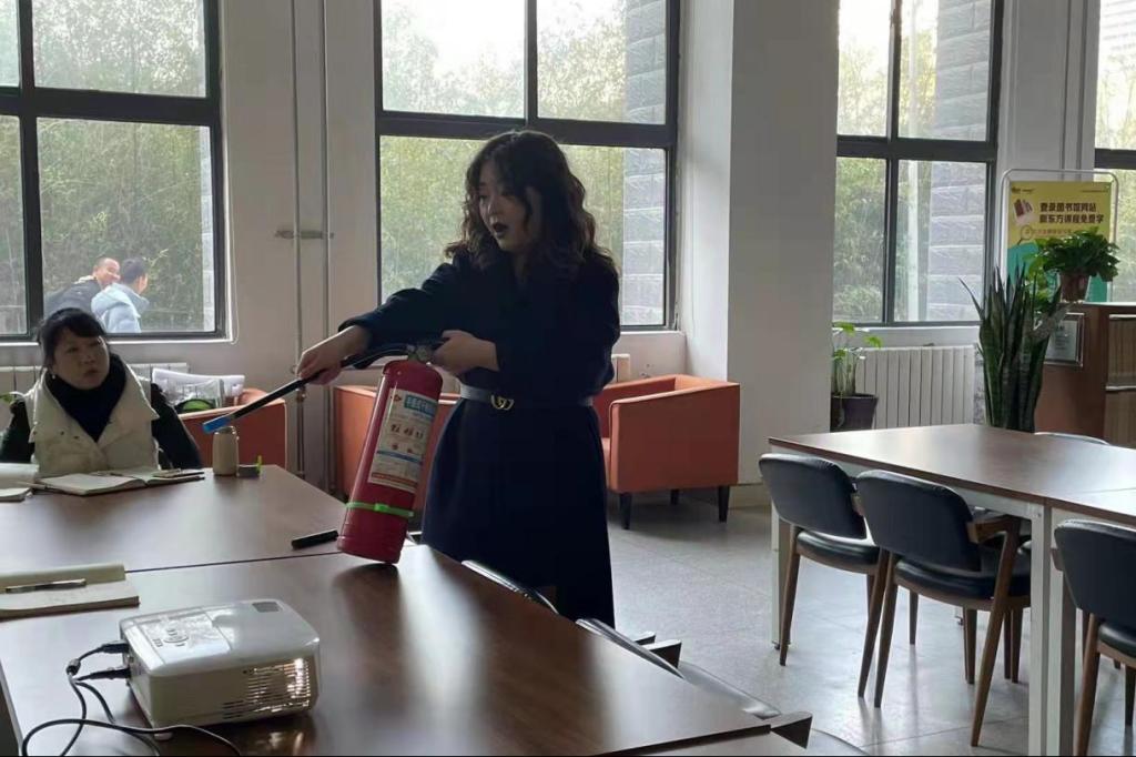 本次培训,图书馆特邀西安市圣安防火技术中心培训部主任王瑜为大家带来了一场印象深刻的安全警示教育。王瑜从火灾的形成原因、基本灭火方法、发生火灾时应如何正确报警和逃生、部分消防器材的作用和使用方法等方面进行了详细讲解。随后,在图书馆一楼大厅为大家现场演示了如何使用灭火器材。