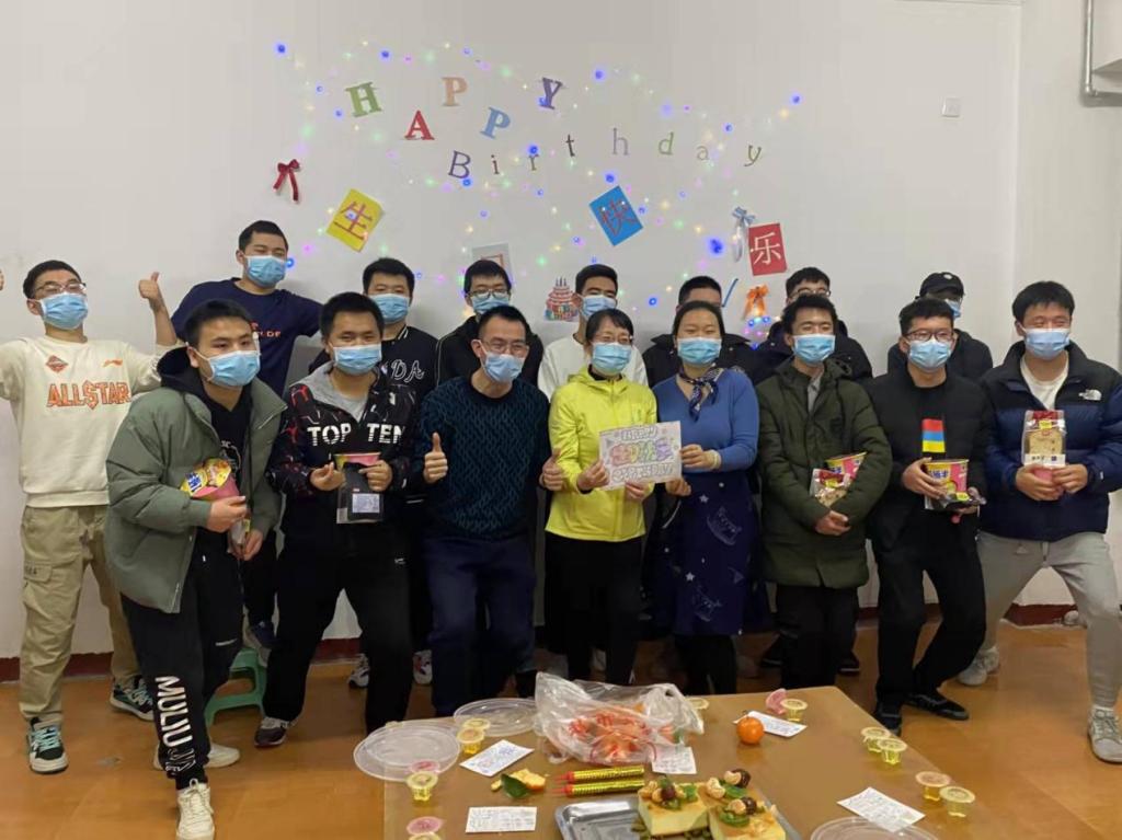 活动分楼层进行,男生4号公寓从二楼、三楼(一、二、三楼的寿星集中在三楼)、四楼、五楼、六楼,以及女生公寓的二楼大厅。当老师们笑意盈盈地送上一块生日蛋糕,代表团团圆圆、甜甜蜜蜜,再送上一个橙子,代表诚心诚意的爱和心想事成的美好祝愿。
