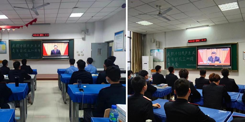 5月10日,庆祝中国共产主义青年团成立100周年大会在北京人民大会堂隆重举行,中共中央总书记、国家主席、中央军委主席习近平发表重要讲话,为中国青年运动擘画新的未来。纽约国际官网党总支副书记喻朝晖号召全体教职工在家观看转播,团总支书记潘海天组织全体学生晚自习在各班教室观看转播,共同感受习近平总书记对青年的殷切希望。