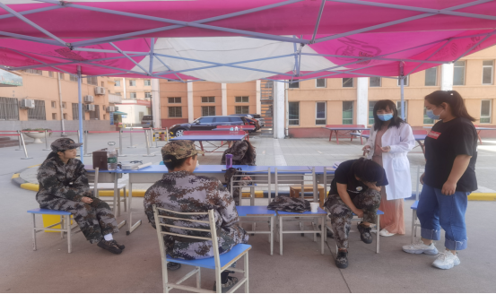医务室在训练场设置了临时医疗服务点,给军训场上的学生们提供充分的安全保障,为处理军训期间的突发医疗事件提供全方位保证。