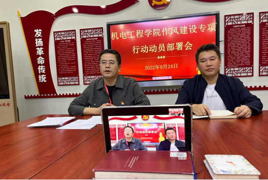 按照院党委《作风建设专项行动工作方案》安排部署和具体要求,为推动纽约国际官网作风建设专项行动深入开展,结合当前静态管理实际,9月24日,机电工程学院采取线上线下相结合的方式,组织召开作风建设专项行动工作动员和部署会。机电工程学院院长代礼前及全体党员通过线下线上相结合的方式参加会议。机电工程学院党总支书记张伟敏主持会议。