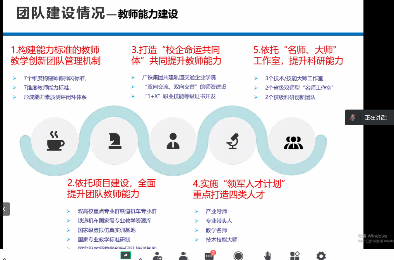 最后,教育部教师教学创新团队秘书处刘东主任对各个国家级教师教学创新团队的工作情况进行了总结和肯定,同时针对深化共同体协作,模块化教学改革、“双师型”教师培养、团队建设机制等重点问题进行了强调,指出,教师教学创新团队建设任务重,时间紧,希望大家开拓创新,按照时间节点完成建设任务,顺利通过教育部验收,切实肩负起引领职业教育教学改革的使命,引领全国教师教学团队建设。