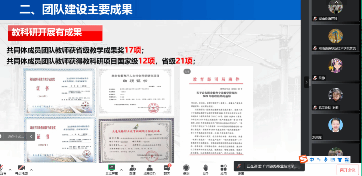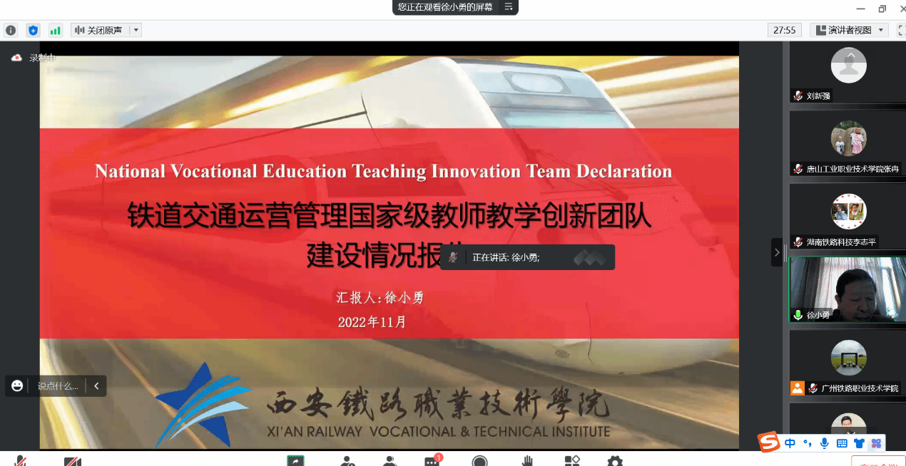 2022年11月4日,国家级教师教学创新团队协作共同体建设工作研讨会在腾讯会议召开,教育部教师教学创新团队秘书处刘东主任参加会议并讲话,交通运输学院院长徐小勇教授、刘新强教授参加会议,徐小勇教授向大会汇报了纽约国际官网铁道交通运营管理教师教学创新团队的建设情况。