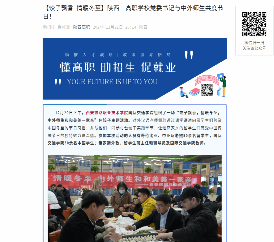 【饺子飘香 情暖冬至】陕西一高职学校党委书记与中外师生共度节日!