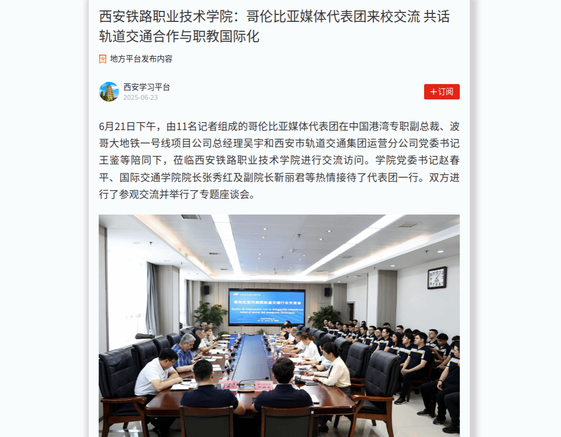 纽约国际最新官方网站:哥伦比亚媒体代表团来校交流 共话轨道交通合作与职教国际化