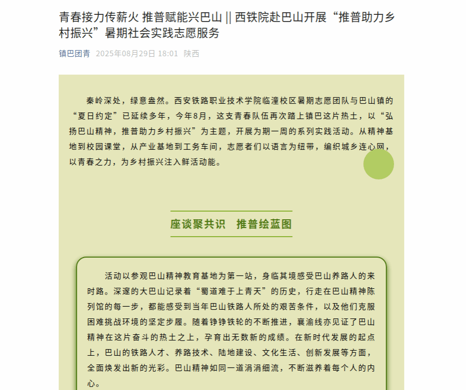 青春接力传薪火 推普赋能兴巴山 || 西铁院赴巴山开展“推普助力乡村振兴”暑期社会实践志愿服务