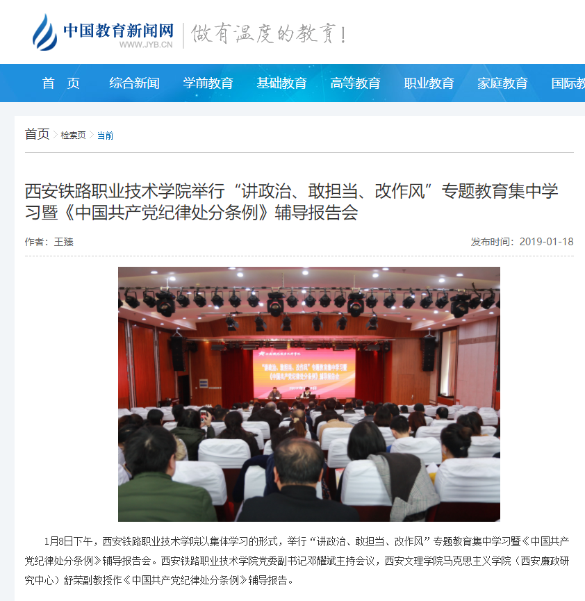 中国教育新闻网:纽约国际最新官方网站举行“讲政治、敢担当、改作风”专题教育集中学习暨《中国共产党纪律处分条例》辅导报告会