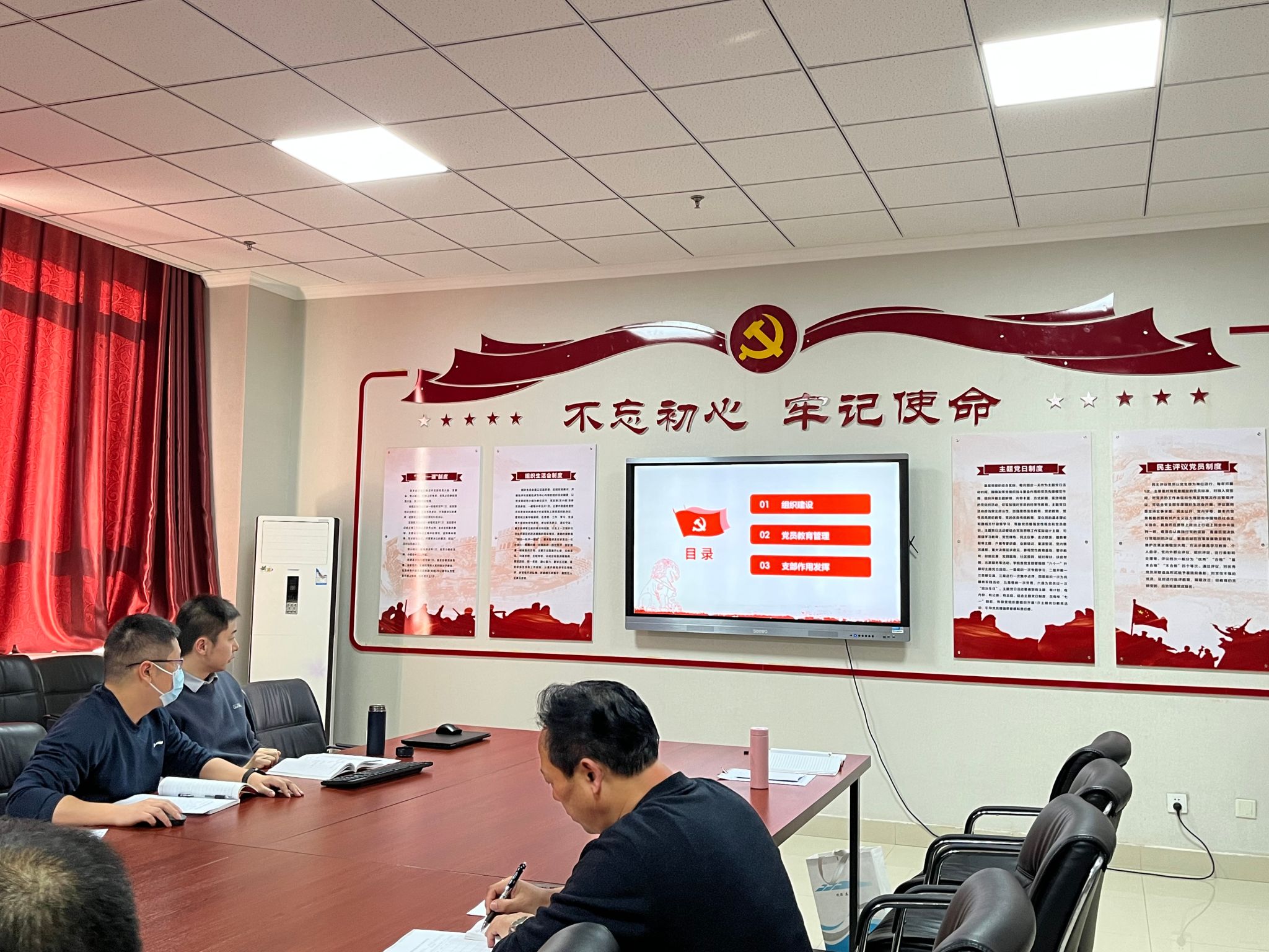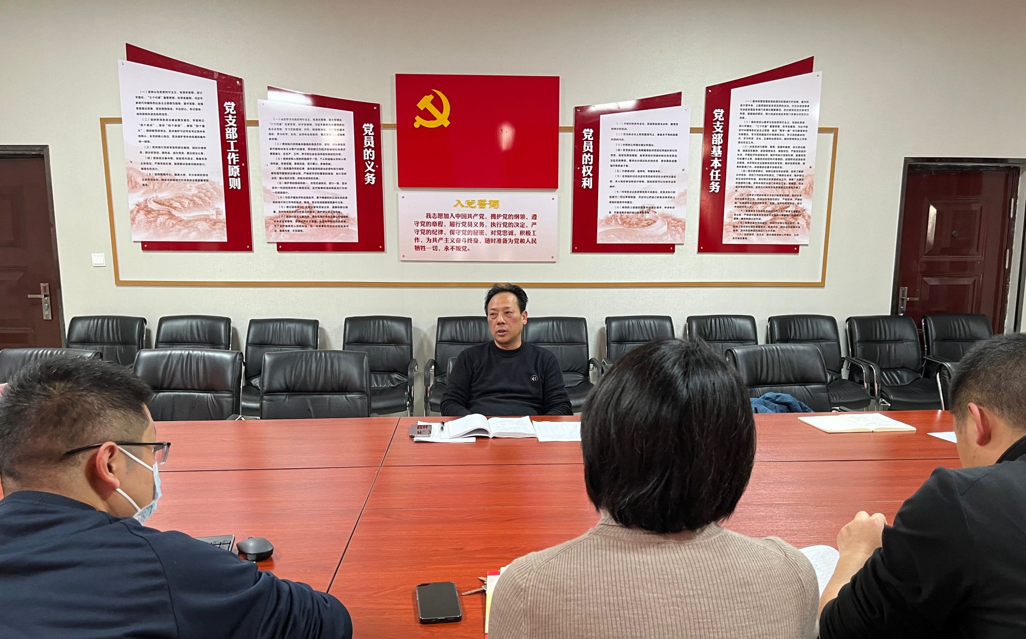 综合工作支部书记肖贤着重汇报了工作重点完成情况,特别对“三会一课”、党员承诺积分、党建月报、主题党日活动、志愿服务活动等情况;“双带头人”培育情况进行了详细的叙述。