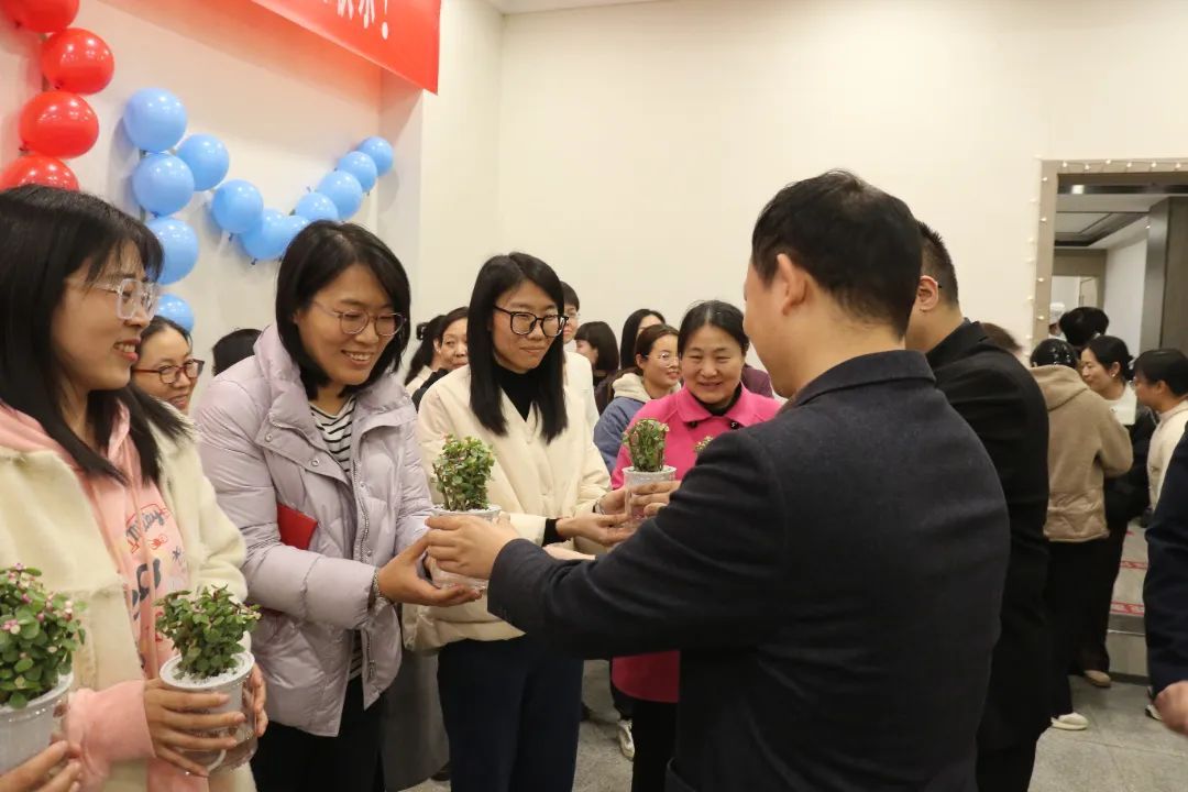 随后,校区领导和分会干部为女职工赠送鲜花,共同点亮蜡烛,许下美好愿望。