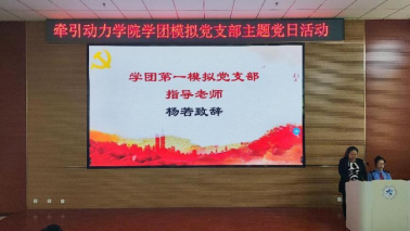 图4 学团第一模拟党支部指导教师杨若致辞