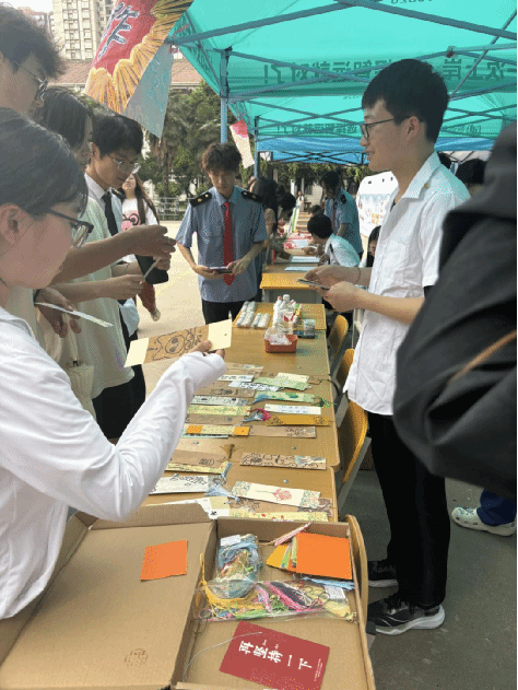 本次活动共设置三项环节,一是“串起心心链,链起你我他“”心灵书签创作“等手工活动,同学们认真耐心完成制作,既提高了动手能力,也调节了心理压力;二是“倾听心声”游戏,同学们将自己的烦恼匿名写下来,由其他同学给出建议,帮助同学们缓解焦虑、消除烦恼;三是“心理知识问答”活动,让同学们了解到保持心理健康的方式方法。最后,同学们参与“疯狂转盘”游戏领取礼品,并在横幅上签名留念。此次心理健康日活动圆满举办,同学们在游戏中愉悦身心、放松自我,调整好自己的心态迎接往后的学习生活,