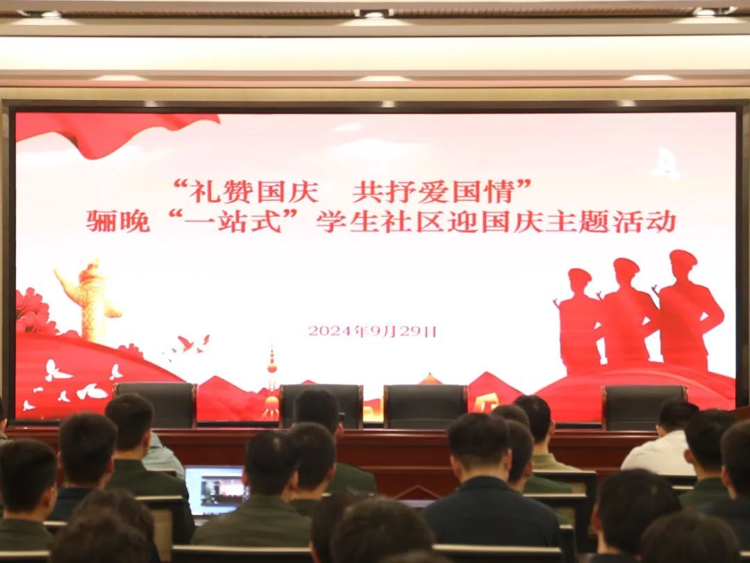 为热烈庆祝中华人民共和国成75周年,全面落实立德树人根本任务,弘扬爱国主义精神,增强学生的民族自豪感和爱国热情,9月29日,临潼校区骊晚“一站式”学生社区在强能楼二楼多媒体教室主会场、各班级分会场开展了“礼赞国庆,共抒爱国情”迎国庆主题活动。校区党总支副书记马荣、学工办主任高永刚、团委副书记胡静及辅导员参加本次活动。