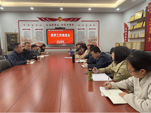 结合电气工程学院院长和副院长刚刚调整到位的情况,为尽快落实学院“双高”重点突破项目和强基提质任务,4月21日下午,电气工程学院在会议室召开四月份教学工作推进会。电气工程学院党总支书记喻朝晖,院长王公强,副院长宋永兴及全体教研室主任、专业带头人、教学管理人员参加了此次会议。