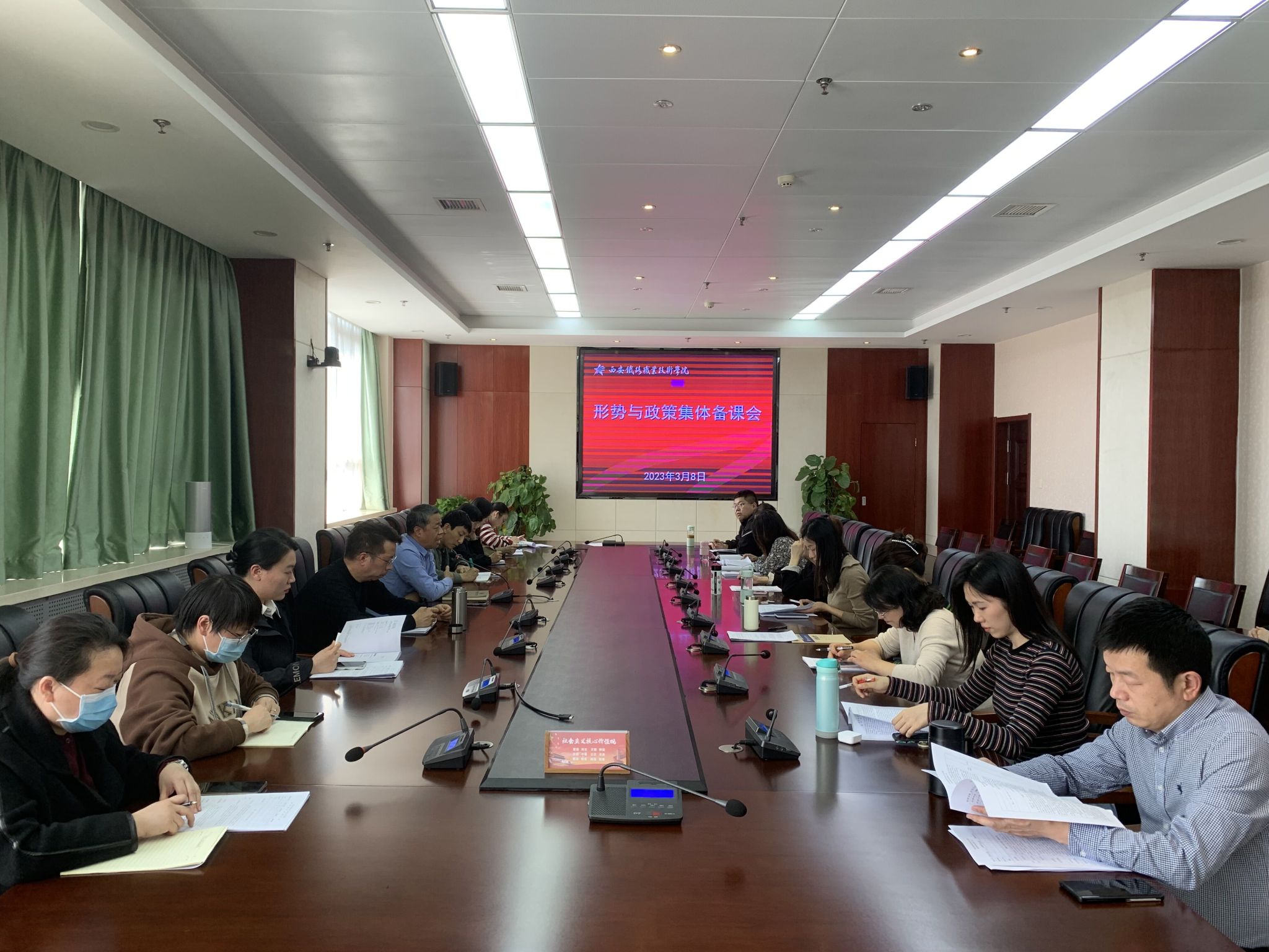 3月8日,学院在港务校区召开了2022-2023学年第二学期“形势与政策”课集体备课会。马克思主义学院院长景延鹏、临潼校区教学科科长冷鑫、马克思主义学院思法基础教研室副主任邢星以及承担《形势与政策》课的所有专兼职教师参加了集体备课会。备课会由毛特概论与形策教研室主任邢卫红主持。