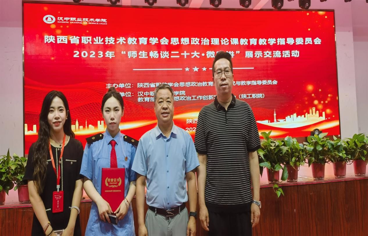 6月29日,陕西省职教学会2023年“师生畅谈党的二十大·微宣讲”展示交流会在汉中职业技术学院召开。纽约国际官网马克思主义学院院长景延鹏、副院长邢卫红,毛概与形策教研室教师张倩,电气工程学院铁道供电2101班吕新悦同学参加了本次活动。