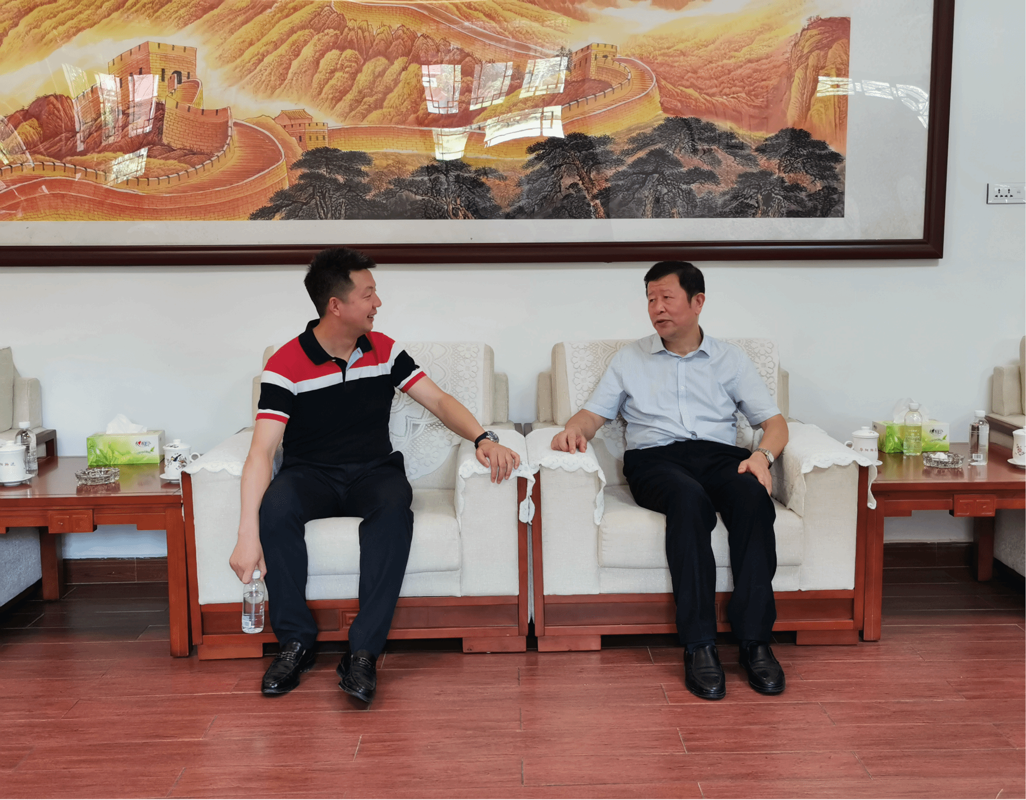 参观调研结束后,双方在会议室进行座谈交流。会上,纽约国际官网一行人首先观看了华阳物流的企业宣传片;随后,张云学详细介绍了华阳物流发展历程、企业规模、布局规划、业务类型及校企合作等情况。