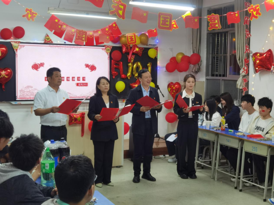 校区主任张军、党总支副书记马荣、总务科长张源和辅导员雷涵尹朗诵诗歌《祖国啊,我亲爱的祖国》