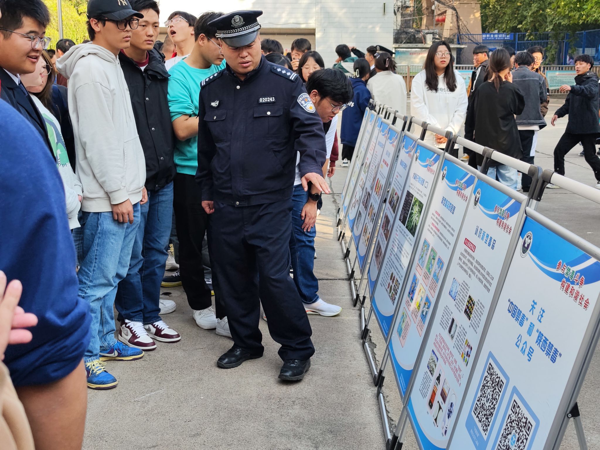 为全面落实学生法制宣传教育,加大对宗教政策法规的宣传力度,提高学生反电信网络诈骗及识毒、防毒、拒毒能力,增强自我防范意识,打造风清气正的育人环境,校区邀请了公安局临潼分局国保大队大队长于胜利、骊山派出所副所长付北峰、国保大队民警金磊以及反诈中心民警马雨婷等7名警官于10月23日下午,在校区开展警示教育系列活动。校区党总支书记兼主任张军、学工办主任高永刚、保卫科相关人员、部分辅导员和班主任全程参与了活动。