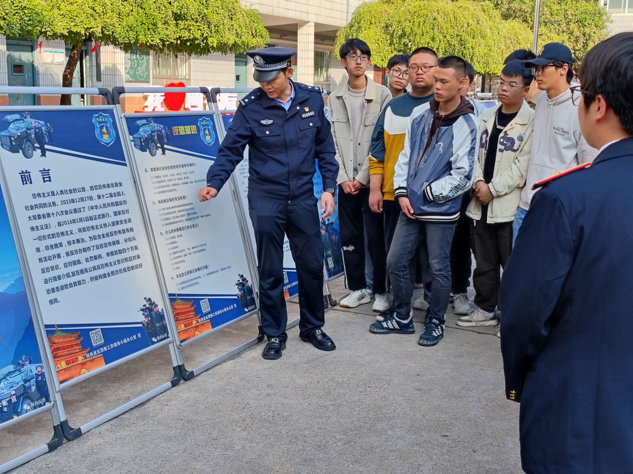 打击恐怖活动,维护校园安全。金磊警官通过展板详细介绍了反恐常识、应对措施、处罚案例、举报奖励等内容,进一步提高了同学们反恐怖主义意识,让同学们明白任何单位和个人都有协助、配合有关部门开展反恐怖主义工作的义务,都必须严格履行法律规定的反恐怖工作责任,也提醒了学生时刻要树立安全意识,增强自我防范能力,积极维护校园环境安全。